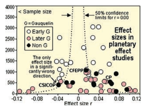 The studies in Figure 1 are too numerous and too consistent with hundreds of other studies to be easily dismissed. Also, their subsequent meta-analysis shows that the differences between results are entirely explained by sampling errors, which leaves nothing for astrology and astrologers to explain; to paraphrase Pierre-Simon Laplace, we have no need of such hypotheses. But for completeness, we should still look at some of those other studies as shown in Figure 2.