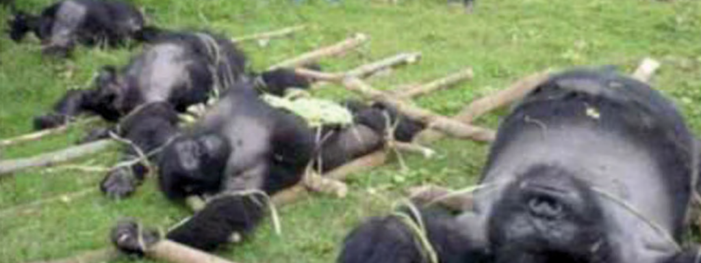 âTo feed these people, wildlife is hunted from the surrounding forests,â said Tara Stoinski, president and chief scientist of the Dian Fossey Gorilla Fund International. âThis includes gorillas, chimpanzees, elephants, and many other species.â Trade in bushmeat is illegal, but the Congo is a war-torn region that makes such laws unenforceable (Posada 2017).