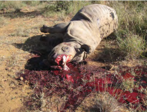 Sporting AK-47 assault rifles and axes, the group of men stalk a black rhino through the African bush. They soon bring it down with powerful volleys. While still alive, the rhino peers at the men as they approach. The poachers quickly use the axe to sever its horn from its head, not caring that they are inflicting great pain as they hit a nerve and leave the rhino dehorned and its head a pulpy mess. It dies, leaving its own family behind because of human greed.ââRhino have a particularly plaintive cry,â (conservationist Ian) Player1 wrote (in The White Rhino Saga), âwhich once heard is never forgotten. The screams of agony from rhino that have had their horns chopped off while still alive should reach into the hearts of all of usââ (Rademeyer 2017).
