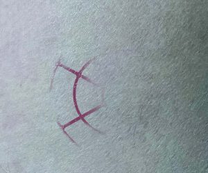 I watched the mark, photographing it every day. After two weeks it was still visible. It looked the same color as many of the marks seen in the database.