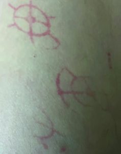 Somehow this site had become the worldwide hub for âĂtranges traces circulaires cutanĂ©esâ (âstrange circular skin marksâ). A single thread (and accompanying database) documented over 250 cases between 2013 and 2022. The cases were often illustrated with photos and accounts from the marked.