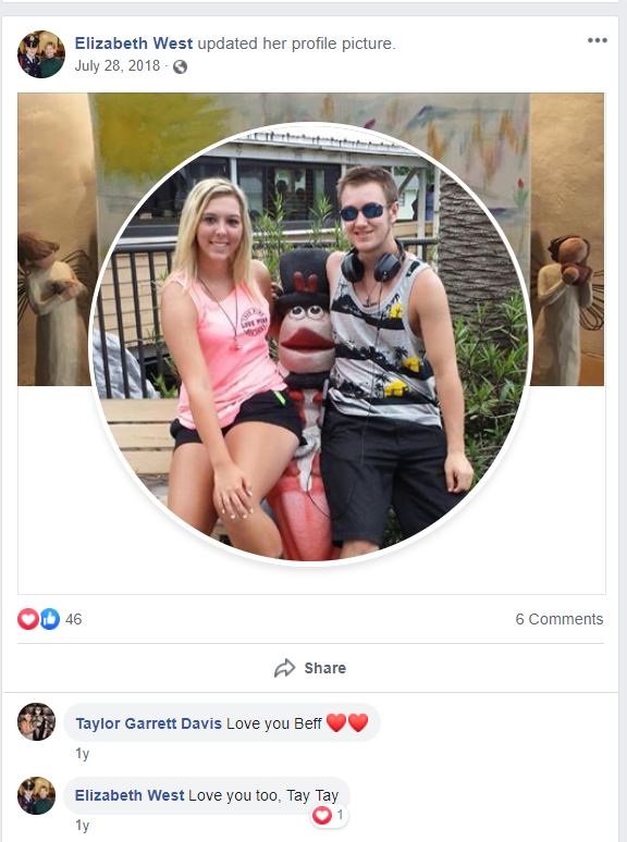 Posted on Beth West’s personal Facebook page is a photo of Tyler and his cousin. In the comments Beth calls her niece “Tay Tay.” Beth states that these two were very close—almost like siblings.