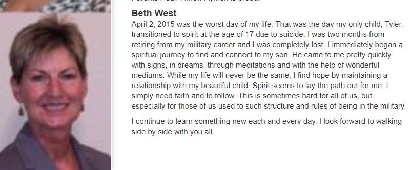 We can learn a lot about Beth and her son from her bio on the website Helping Parents Heal. I’ve written about this website before but didn’t choose to name it. I’ve been told by a member of their group that they allow mediums to belong to the private group. This is something that should be reserved only for grieving parents. In my opinion, TJ and those like him are preying on vulnerable people who meet online and share personal stories about their pain and memories of their children. In “Thomas John Revisited,” I explain how he reads “Joan” in a video that he claims was a scientifically controlled experiment; we found that everything TJ “got right” about Joan was on her Facebook page or in an online obituary.