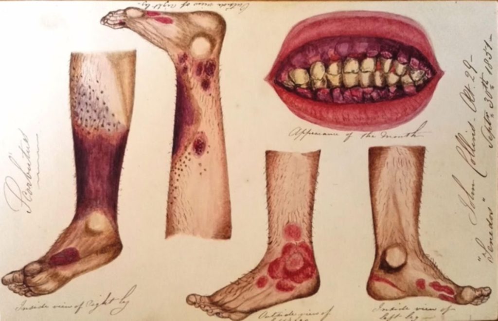 Scurvy (watercolor), 1851, James Lind. British Admiralty Library.