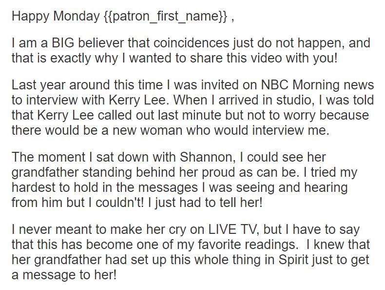 Iâve become very interested in the relationship between mediums and the morning news programs giving free publicity to push psychicsâ shows and private readings. I know that morning programming is trying to be engaging and fun, even showing the reporters as a friend to the viewer in the hopes of persuading them to start every morning with their show. Sometimes, as in the case of these mediums, it becomes a free commercial. Whatâs wrong with the morning news just giving ⊠news?