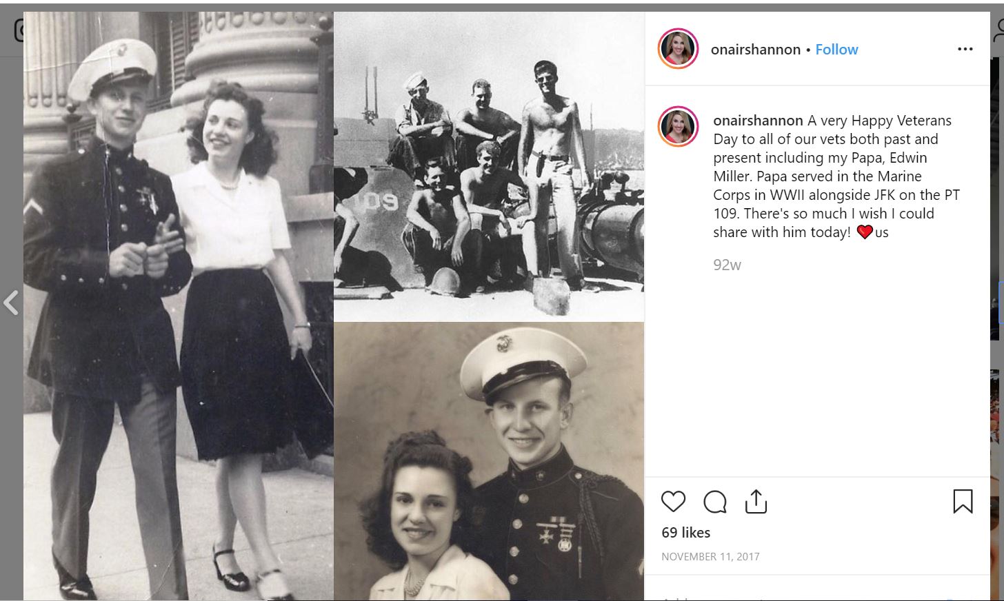 Fraser is spot onâwe even have evidence that Miller was looking at old photos of her grandfather. They are right there on her Instagram page: three old photos of her grandfather, and she mentions that he was in the Marines. Wow Fraser, how did you know?